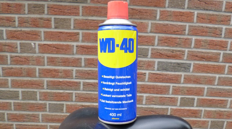 Gereinigt vom Dreck und Sand konnte ich dies jedoch noch nicht bewegen. Die Teile waren leicht angerostet und saßen fest. Um diese zu lösen, habe ich ein wenig Kriechöl benutzt. Ich habe dazu eine Sprühflasche von dem Öl WD 40 zur Hand genommen und die festsitzenden Teile minimal eingenebelt. Nach guten 30-45 Minuten fingen die Teile langsam wieder an Bewegung zu zeigen. Ich habe daraufhin weitere 15 Minuten gewartet, da ich keine Anbauteile beschädigen wollte. Insgesamt hat das Kriechöl etwa 60 Minuten gebraucht, um die angerosteten Bauteile zu lösen.
